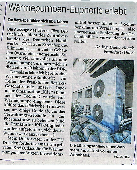 Dr. Dieter Noack, zum Thema Wärmepumpen,