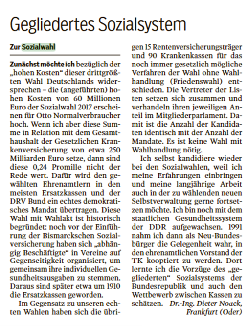 Dr. Dieter Noack, zum Thema Sozialwahl 2023,